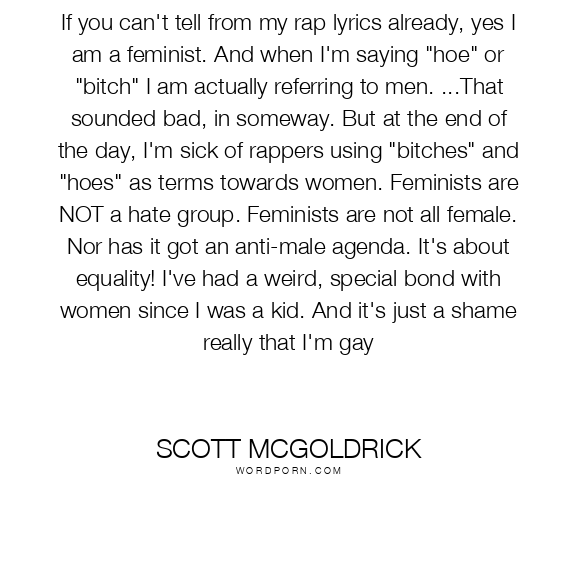 scott mcgoldrick quote. If you can't tell from my rap lyrics already, yes I am a feminist. And when I'm saying