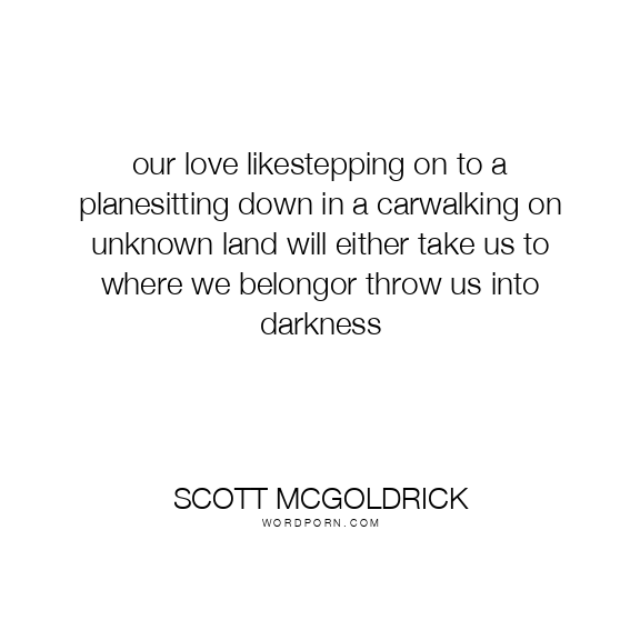 scott mcgoldrick quote. our love likestepping on to a planesitting down in a carwalking on unknown land will either take us to where we belongor throw us into darkness