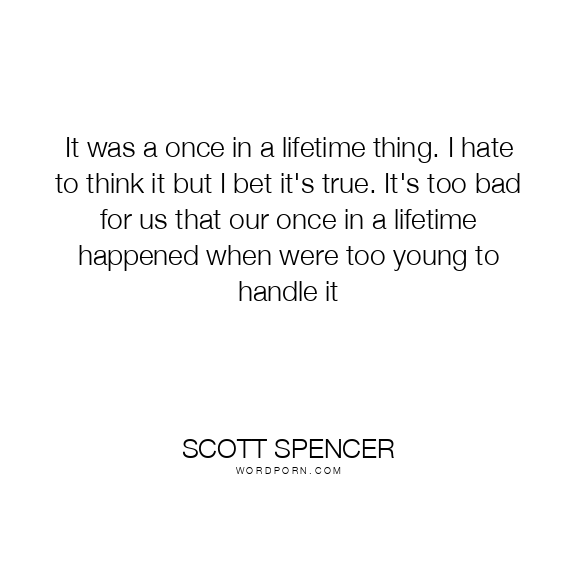 It was a once in a lifetime thing. I hate to think it but I bet it's true. It's too bad for us that our once in a lifetime happened when were too young to handle it