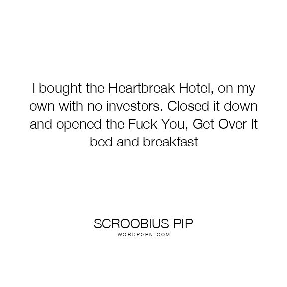 I bought the Heartbreak Hotel, on my own with no investors. Closed it down and opened the Fuck You, Get Over It bed and breakfast