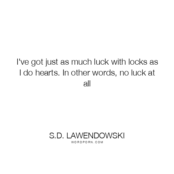 Copy Image I've got just as much luck with locks as I do hearts. In other words, no luck at all Moms Typewriter A A SAVE THIS IMAGE