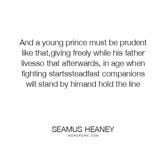 And a young prince must be prudent like that,giving freely while his father livesso that afterwards, in age when fighting startssteadfast companions will stand by himand hold the line