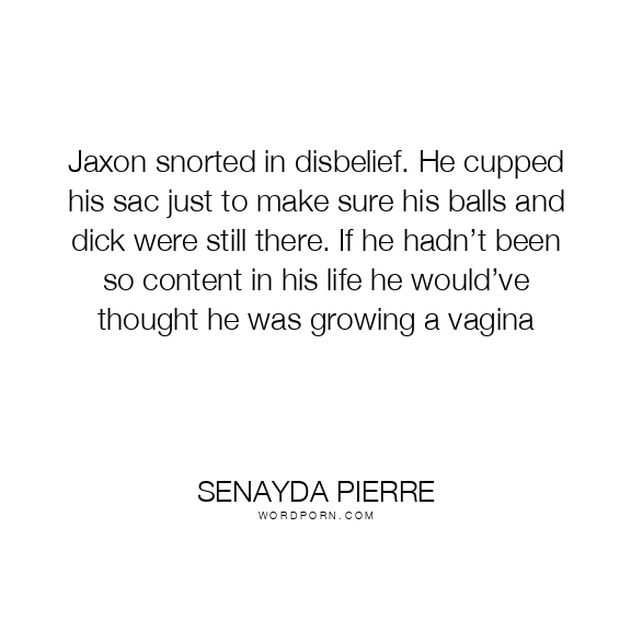 Jaxon snorted in disbelief. He cupped his sac just to make sure his balls and dick were still there. If he hadn’t been so content in his life he would’ve thought he was growing a vagina