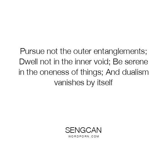 Pursue not the outer entanglements; Dwell not in the inner void; Be serene in the oneness of things; And dualism vanishes by itself