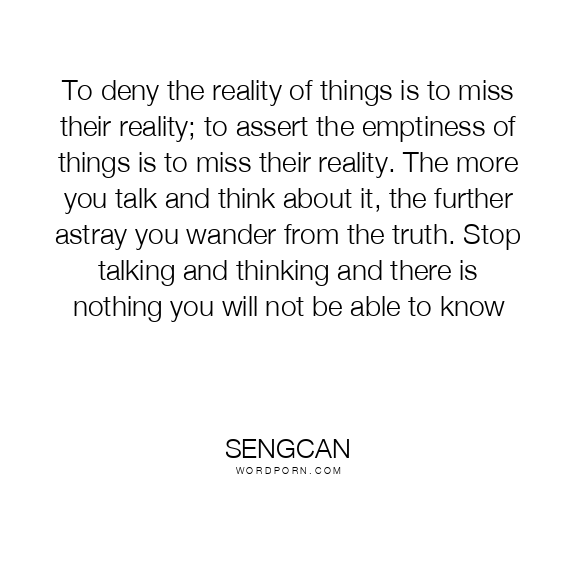 To deny the reality of things is to miss their reality; to assert the emptiness of things is to miss their reality. The more you talk and think about it, the further astray you wander from the truth. Stop talking and thinking and there is nothing you will not be able to know