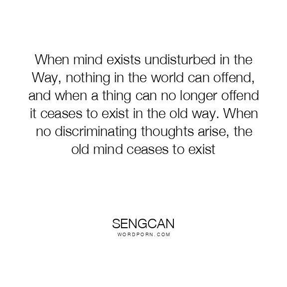When mind exists undisturbed in the Way, nothing in the world can offend, and when a thing can no longer offend it ceases to exist in the old way. When no discriminating thoughts arise, the old mind ceases to exist