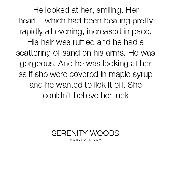 He looked at her, smiling. Her heart—which had been beating pretty rapidly all evening, increased in pace. His hair was ruffled and he had a scattering of sand on his arms. He was gorgeous. And he was looking at her as if she were covered in maple syrup and he wanted to lick it off. She couldn’t believe her luck