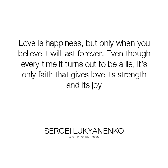 Love is happiness, but only when you believe it will last forever. Even though every time it turns out to be a lie, it’s only faith that gives love its strength and its joy