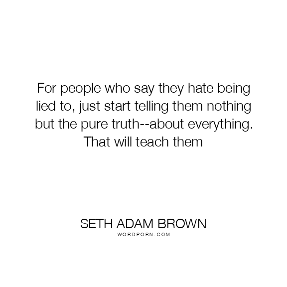 Copy Image For people who say they hate being lied to, just start telling them nothing but the pure truth--about everything. That will teach them Moms Typewriter A A SAVE THIS IMAGE