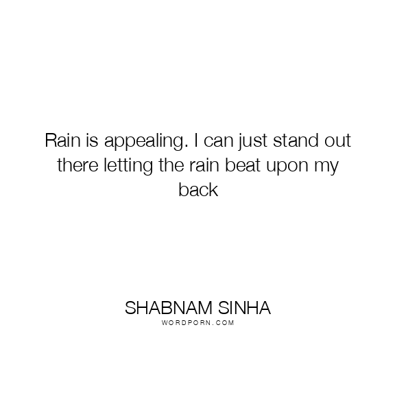 Rain is appealing. I can just stand out there letting the rain beat upon my back