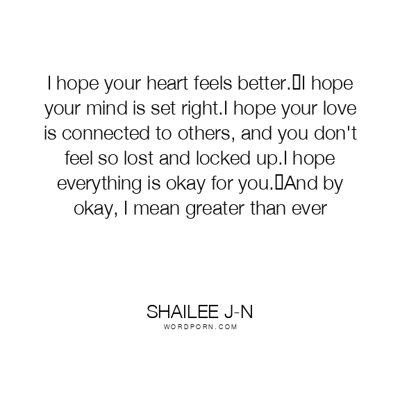 I hope your heart feels better. I hope your mind is set right.I hope your love is connected to others, and you don't feel so lost and locked up.I hope everything is okay for you. And by okay, I mean greater than ever