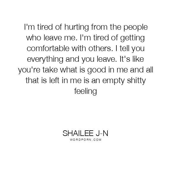 I'm tired of hurting from the people who leave me. I'm tired of getting comfortable with others. I tell you everything and you leave. It's like you're take what is good in me and all that is left in me is an empty shitty feeling