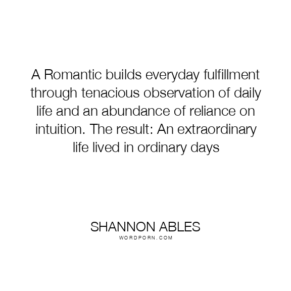 A Romantic builds everyday fulfillment through tenacious observation of daily life and an abundance of reliance on intuition. The result: An extraordinary life lived in ordinary days