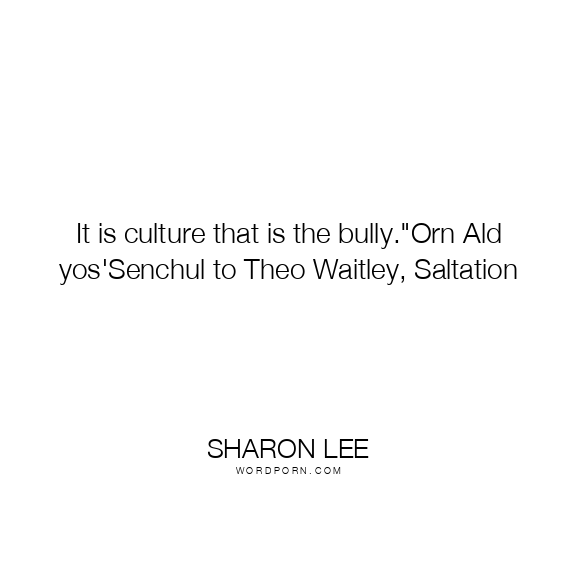 Copy Image It is culture that is the bully."Orn Ald yos'Senchul to Theo Waitley, Saltation Moms Typewriter A A SAVE THIS IMAGE