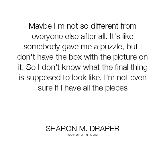 Maybe I'm not so different from everyone else after all. It's like somebody gave me a puzzle, but I don't have the box with the picture on it. So I don't know what the final thing is supposed to look like. I'm not even sure if I have all the pieces