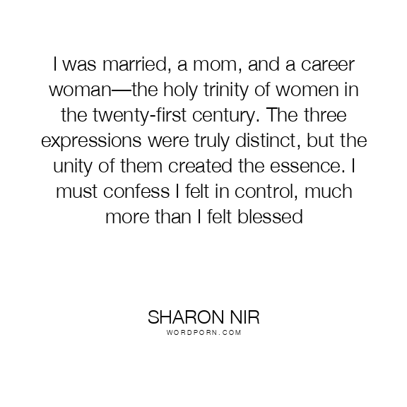 I was married, a mom, and a career woman—the holy trinity of women in the twenty-first century. The three expressions were truly distinct, but the unity of them created the essence. I must confess I felt in control, much more than I felt blessed