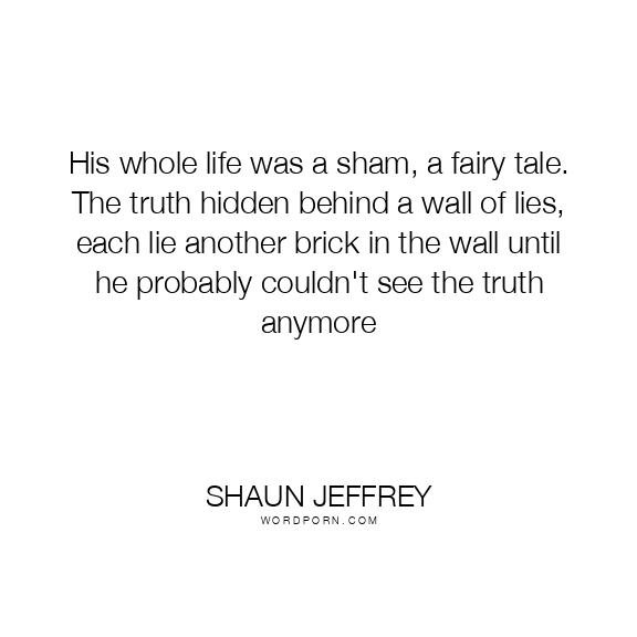 His whole life was a sham, a fairy tale. The truth hidden behind a wall of lies, each lie another brick in the wall until he probably couldn't see the truth anymore