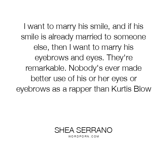 I want to marry his smile, and if his smile is already married to someone else, then I want to marry his eyebrows and eyes. They're remarkable. Nobody's ever made better use of his or her eyes or eyebrows as a rapper than Kurtis Blow