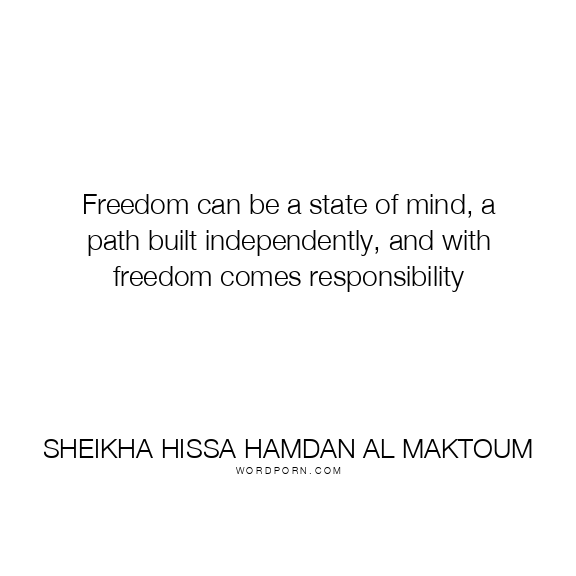 Freedom can be a state of mind, a path built independently, and with freedom comes responsibility