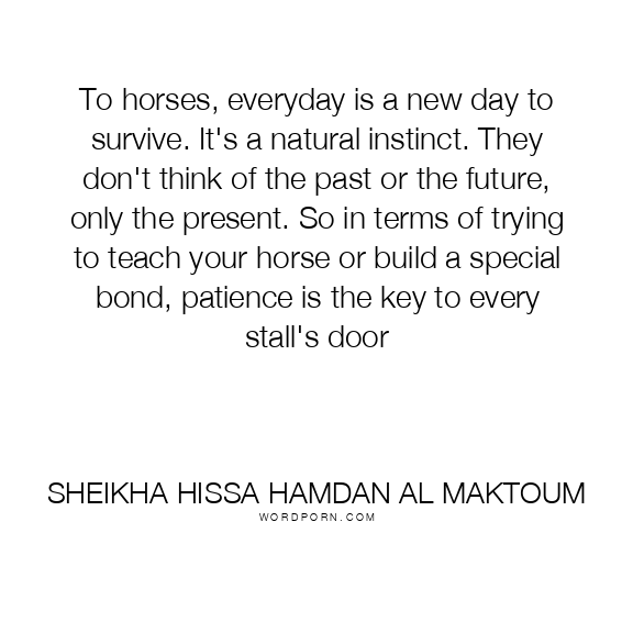 To horses, everyday is a new day to survive. It's a natural instinct. They don't think of the past or the future, only the present. So in terms of trying to teach your horse or build a special bond, patience is the key to every stall's door