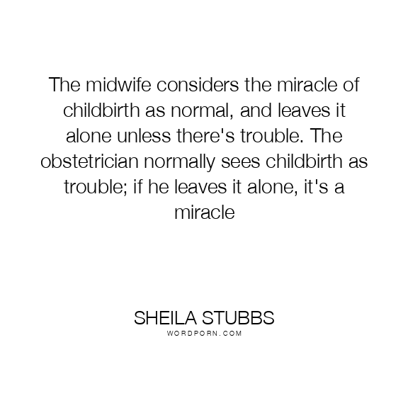 The midwife considers the miracle of childbirth as normal, and leaves it alone unless there's trouble. The obstetrician normally sees childbirth as trouble; if he leaves it alone, it's a miracle