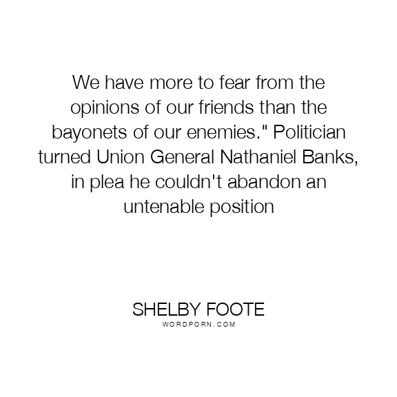 We have more to fear from the opinions of our friends than the bayonets of our enemies." Politician turned Union General Nathaniel Banks, in plea he couldn't abandon an untenable position