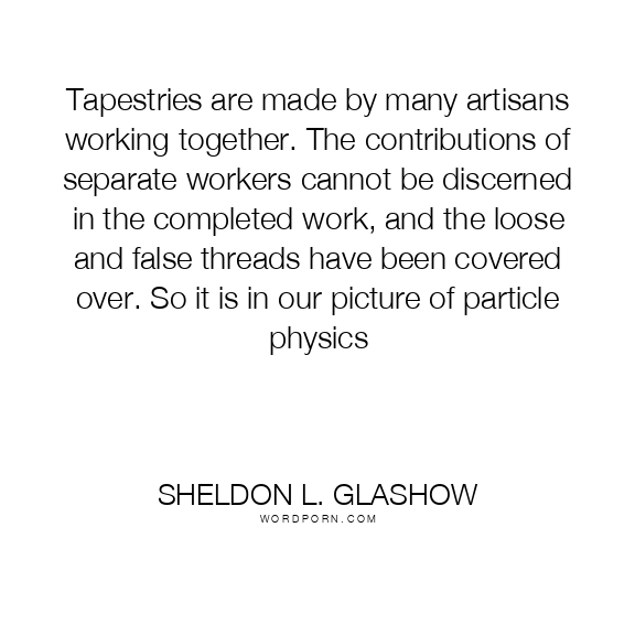 Tapestries are made by many artisans working together. The contributions of separate workers cannot be discerned in the completed work, and the loose and false threads have been covered over. So it is in our picture of particle physics