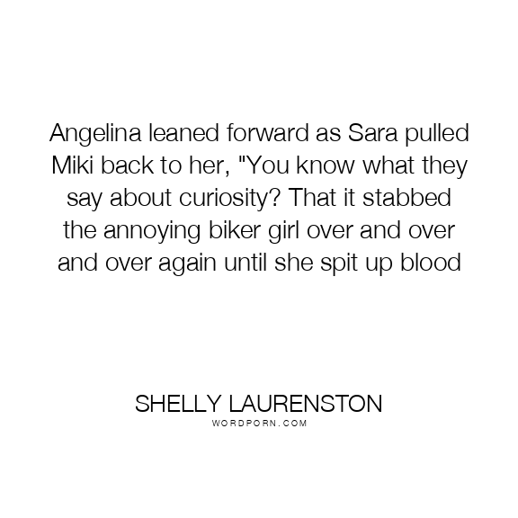 Angelina leaned forward as Sara pulled Miki back to her, "You know what they say about curiosity? That it stabbed the annoying biker girl over and over and over again until she spit up blood