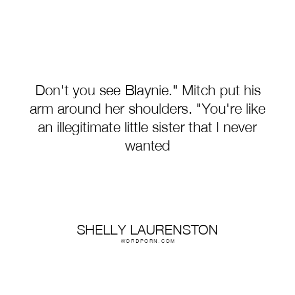 Don't you see Blaynie." Mitch put his arm around her shoulders. "You're like an illegitimate little sister that I never wanted
