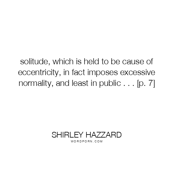 solitude, which is held to be cause of eccentricity, in fact imposes excessive normality, and least in public . . . [p. 7]