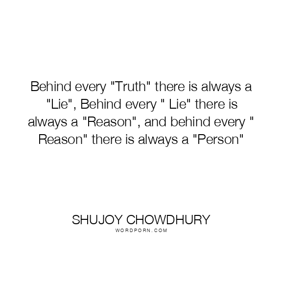 Behind every "Truth" there is always a "Lie", Behind every " Lie" there is always a "Reason", and behind every " Reason" there is always a "Person"