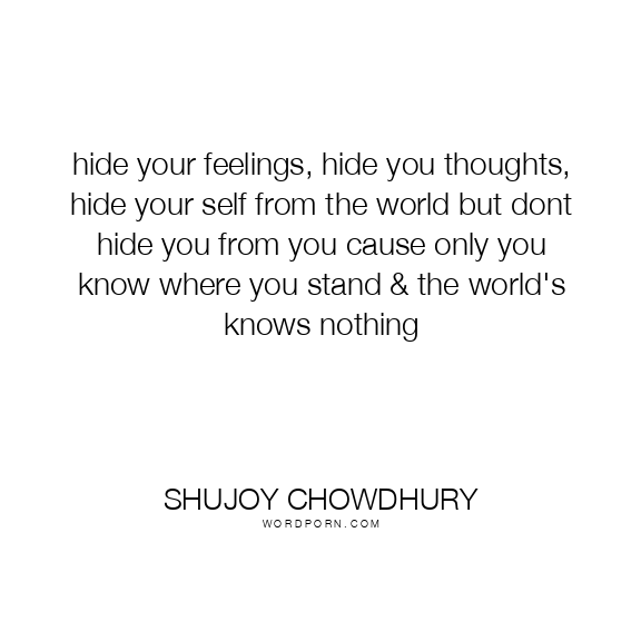 hide your feelings, hide you thoughts, hide your self from the world but dont hide you from you cause only you know where you stand & the world's knows nothing