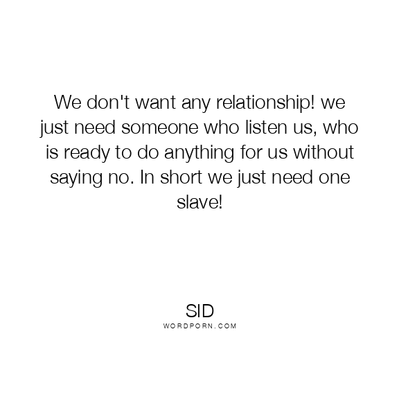 We don't want any relationship! we just need someone who listen us, who is ready to do anything for us without saying no. In short we just need one slave!