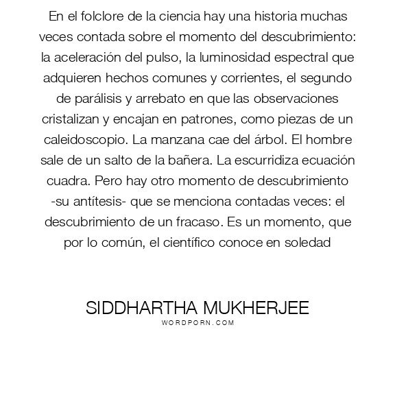 En el folclore de la ciencia hay una historia muchas veces contada sobre el momento del descubrimiento: la aceleración del pulso, la luminosidad espectral que adquieren hechos comunes y corrientes, el segundo de parálisis y arrebato en que las observaciones cristalizan y encajan en patrones, como piezas de un caleidoscopio. La manzana cae del árbol. El hombre sale de un salto de la bañera. La escurridiza ecuación cuadra. Pero hay otro momento de descubrimiento -su antítesis- que se menciona contadas veces: el descubrimiento de un fracaso. Es un momento, que por lo común, el científico conoce en soledad