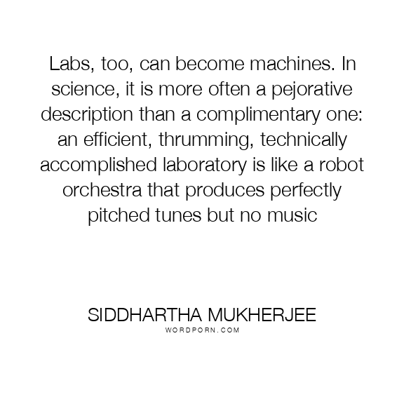 Labs, too, can become machines. In science, it is more often a pejorative description than a complimentary one: an efficient, thrumming, technically accomplished laboratory is like a robot orchestra that produces perfectly pitched tunes but no music