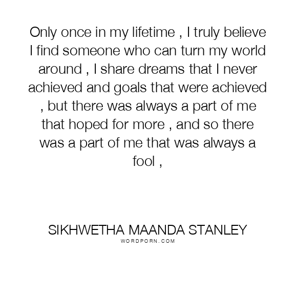 Only once in my lifetime , I truly believe I find someone who can turn my world around , I share dreams that I never achieved and goals that were achieved , but there was always a part of me that hoped for more , and so there was a part of me that was always a fool ,
