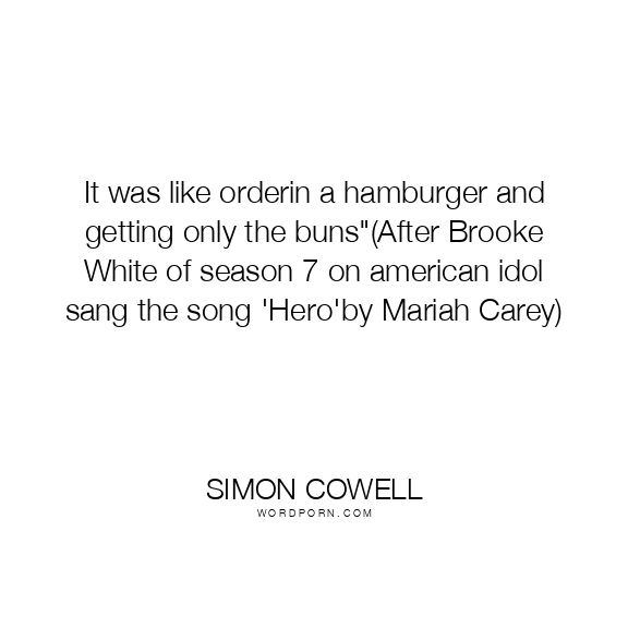 It was like orderin a hamburger and getting only the buns"(After Brooke White of season 7 on american idol sang the song 'Hero'by Mariah Carey)