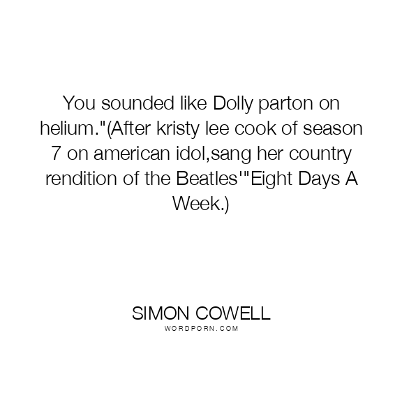You sounded like Dolly parton on helium."(After kristy lee cook of season 7 on american idol,sang her country rendition of the Beatles'"Eight Days A Week.)