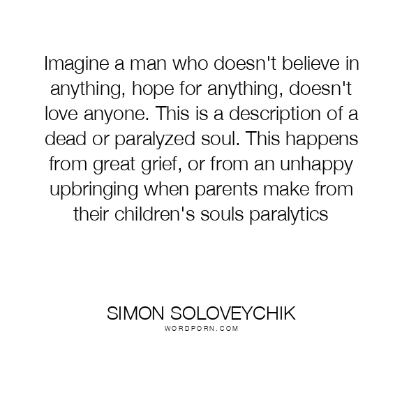 Imagine a man who doesn't believe in anything, hope for anything, doesn't love anyone. This is a description of a dead or paralyzed soul. This happens from great grief, or from an unhappy upbringing when parents make from their children's souls paralytics
