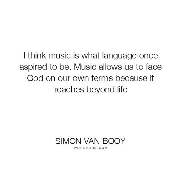 I think music is what language once aspired to be. Music allows us to face God on our own terms because it reaches beyond life