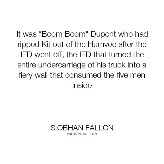 It was "Boom Boom" Dupont who had ripped Kit out of the Humvee after the IED went off, the IED that turned the entire undercarriage of his truck into a fiery wall that consumed the five men inside