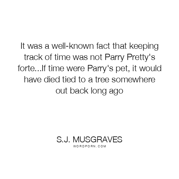 It was a well-known fact that keeping track of time was not Parry Pretty's forte...If time were Parry's pet, it would have died tied to a tree somewhere out back long ago