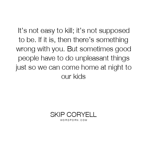It’s not easy to kill; it’s not supposed to be. If it is, then there’s something wrong with you. But sometimes good people have to do unpleasant things just so we can come home at night to our kids