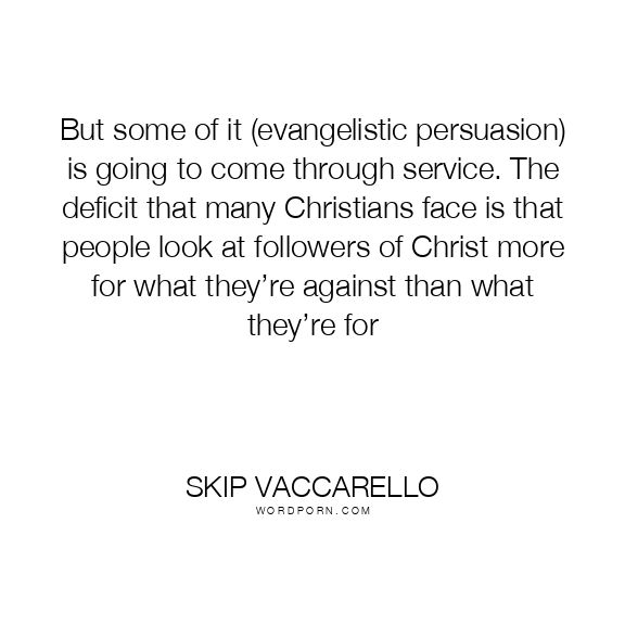But some of it (evangelistic persuasion) is going to come through service. The deficit that many Christians face is that people look at followers of Christ more for what they’re against than what they’re for