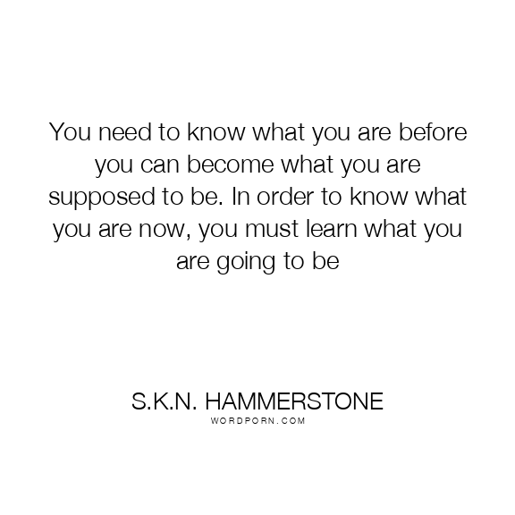 You need to know what you are before you can become what you are supposed to be. In order to know what you are now, you must learn what you are going to be