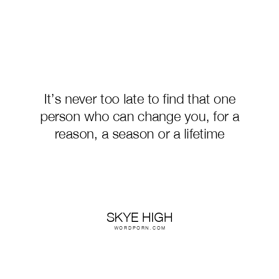It’s never too late to find that one person who can change you, for a reason, a season or a lifetime