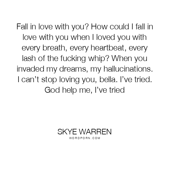 Fall in love with you? How could I fall in love with you when I loved you with every breath, every heartbeat, every lash of the fucking whip? When you invaded my dreams, my hallucinations. I can’t stop loving you, bella. I’ve tried. God help me, I’ve tried