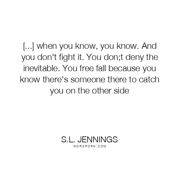 [...] when you know, you know. And you don't fight it. You don;t deny the inevitable. You free fall because you know there's someone there to catch you on the other side
