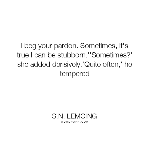Copy Image I beg your pardon. Sometimes, it's true I can be stubborn.''Sometimes?' she added derisively.'Quite often,' he tempered Moms Typewriter A A SAVE THIS IMAGE