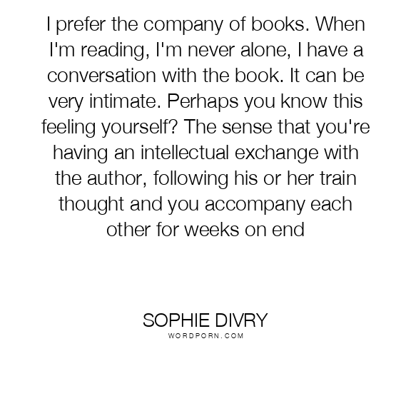 I prefer the company of books. When I'm reading, I'm never alone, I have a conversation with the book. It can be very intimate. Perhaps you know this feeling yourself? The sense that you're having an intellectual exchange with the author, following his or her train thought and you accompany each other for weeks on end